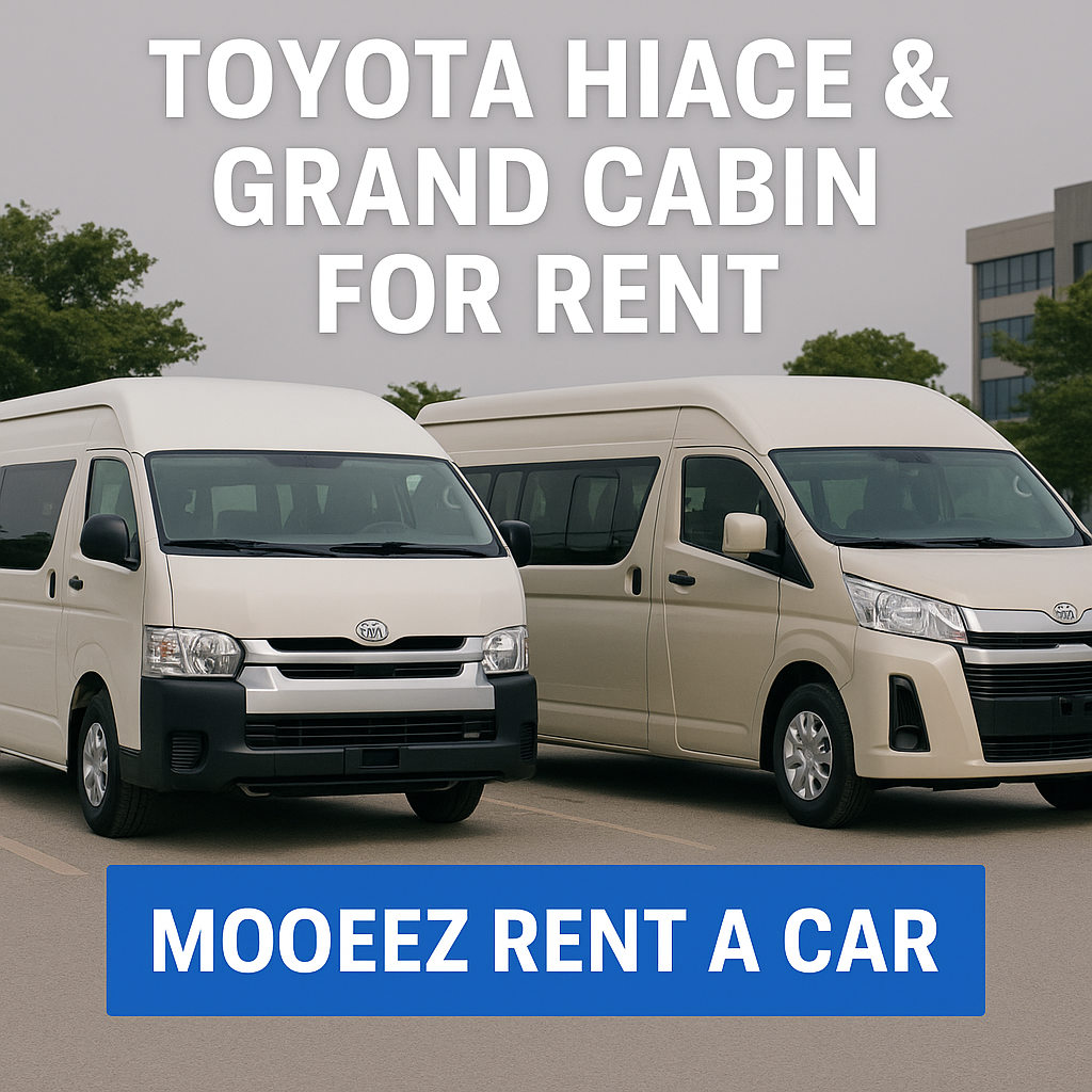Toyota HiAce for Rent in Islamabad – Comfort & Convenience at Your FingertipsAre you planning a group trip or need a spacious vehicle for a family event in Islamabad? Moeez Rent A Car offers Toyota HiAce rentals that combine comfort, reliability, and affordability to meet all your travel needs.Why Choose Toyota HiAce for Rent in Islamabad?Spacious Interior: The Toyota HiAce is designed to comfortably accommodate up to 12-14 passengers, making it perfect for group trips, corporate travel, or family outings.Versatile and Practical: With a roomy cabin, the HiAce ensures that you and your passengers travel in comfort, whether you’re taking a day trip to Faisal Mosque, Daman-e-Koh, or planning to explore Rawalpindi and its surroundings.Affordable & Flexible: We offer competitive and transparent pricing with flexible rental options—whether you need the van for a few hours, a day, or multiple days.Well-Maintained Vehicles: Our Toyota HiAce fleet is meticulously maintained to ensure a smooth, worry-free ride.Professional Drivers: If you prefer not to drive, our experienced drivers are available to take you through the scenic routes of Islamabad, ensuring both safety and convenience.Experience Toyota HiAce’s Premium Features:Color Options: Choose from a range of colors that suit your aesthetic preferences or the nature of your event, making it a great choice for weddings, corporate events, or tourist group trips.Efficient Air Conditioning: Stay cool and comfortable even in the summer heat of Islamabad with the HiAce’s superior air conditioning system.Modern Amenities: The HiAce comes equipped with features like a state-of-the-art sound system, charging ports, and comfortable seating arrangements, ensuring everyone enjoys the journey.—How to Rent a Toyota HiAce in Islamabad with Moeez Rent A Car?1. Online Booking: Reserve your Toyota HiAce quickly and easily through our online booking system. Select your preferred rental dates, pickup location, and required services.2. Delivery Options: We offer convenient delivery and pick-up services in Islamabad and Rawalpindi, making your rental process seamless.3. Affordable Packages: Choose from daily, weekly, or monthly rental packages that fit your budget.—Best Uses for Toyota HiAce in Islamabad:Corporate Events: Renting a Toyota HiAce for corporate meetings, conferences, and business travel in Islamabad ensures a comfortable and professional experience.Tourist Groups: Explore Islamabad’s rich cultural heritage, scenic landmarks, and nearby hill stations with our spacious Toyota HiAce vans, perfect for large groups.Airport Transfers: Whether you’re flying into Islamabad or need to catch a flight, the Toyota HiAce offers ample room for luggage and passengers, ensuring a stress-free journey to and from the airport.